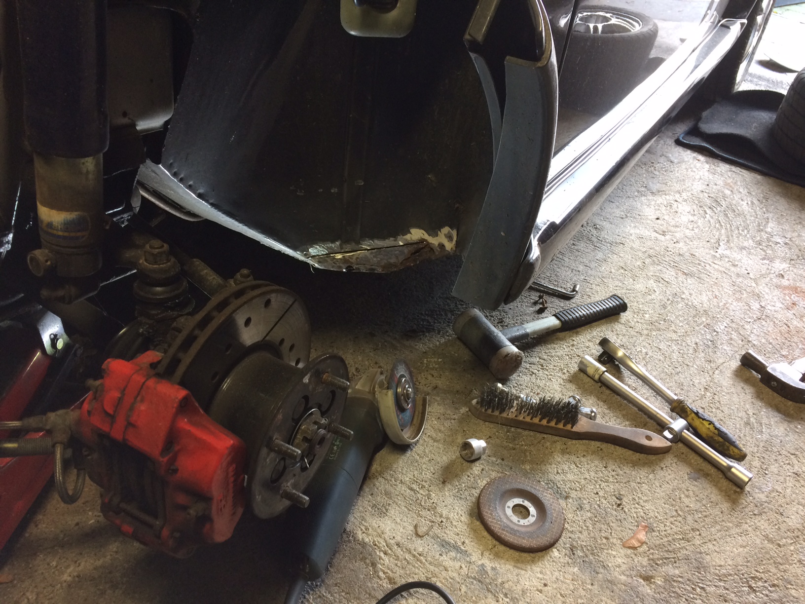 Zo ook deze keer, wat begon met wat roest wegkrabben eindigde met een zetten van een klein plaatje in de linker wielkast.